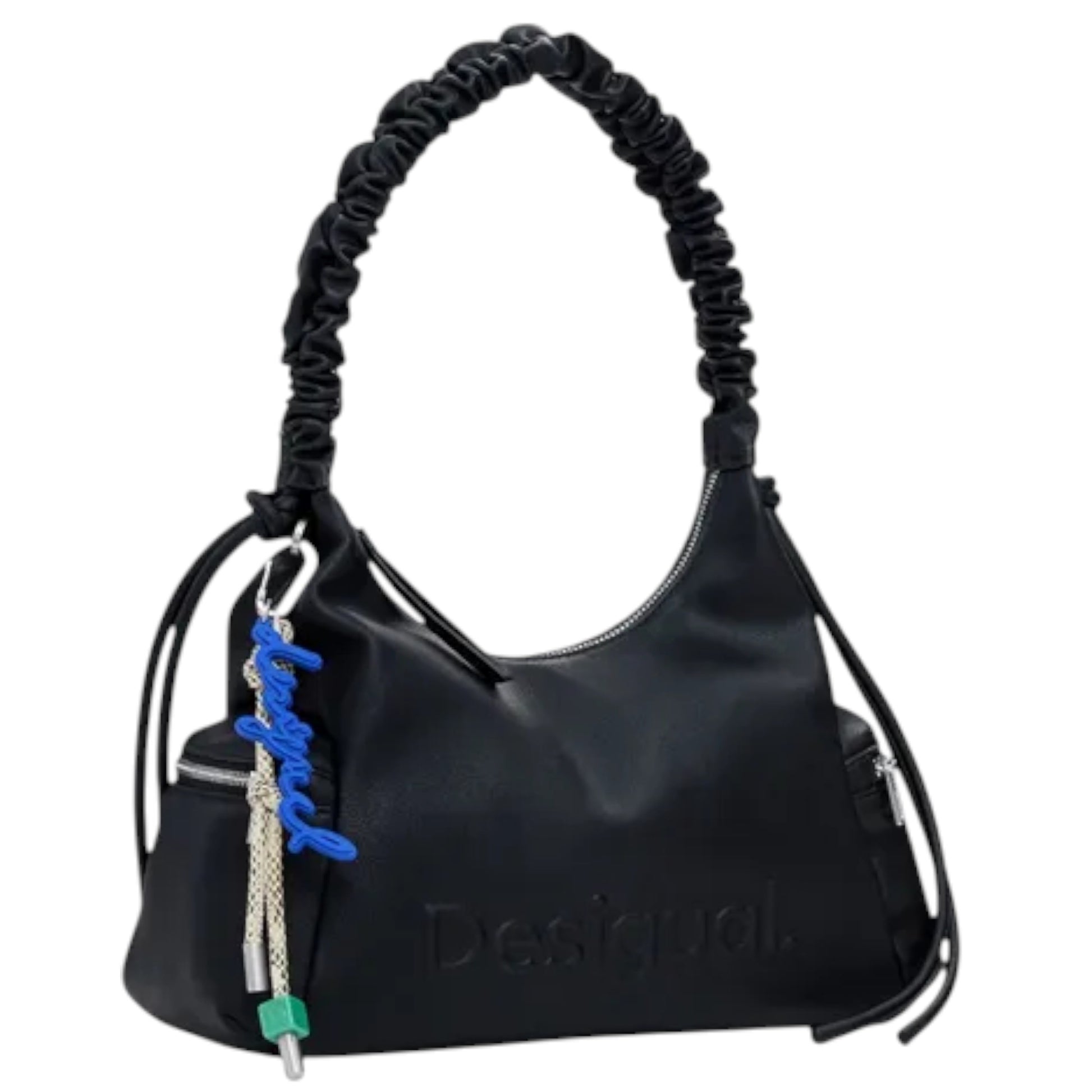 Desigual Bolso Logo 3d Con Asa Fruncida Mediana Negro